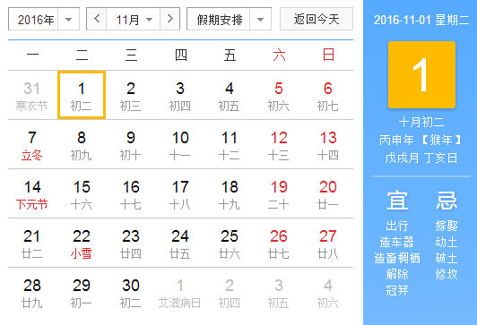 2016年10月31日 农历十月初一星期一 冲龙(庚辰)煞北